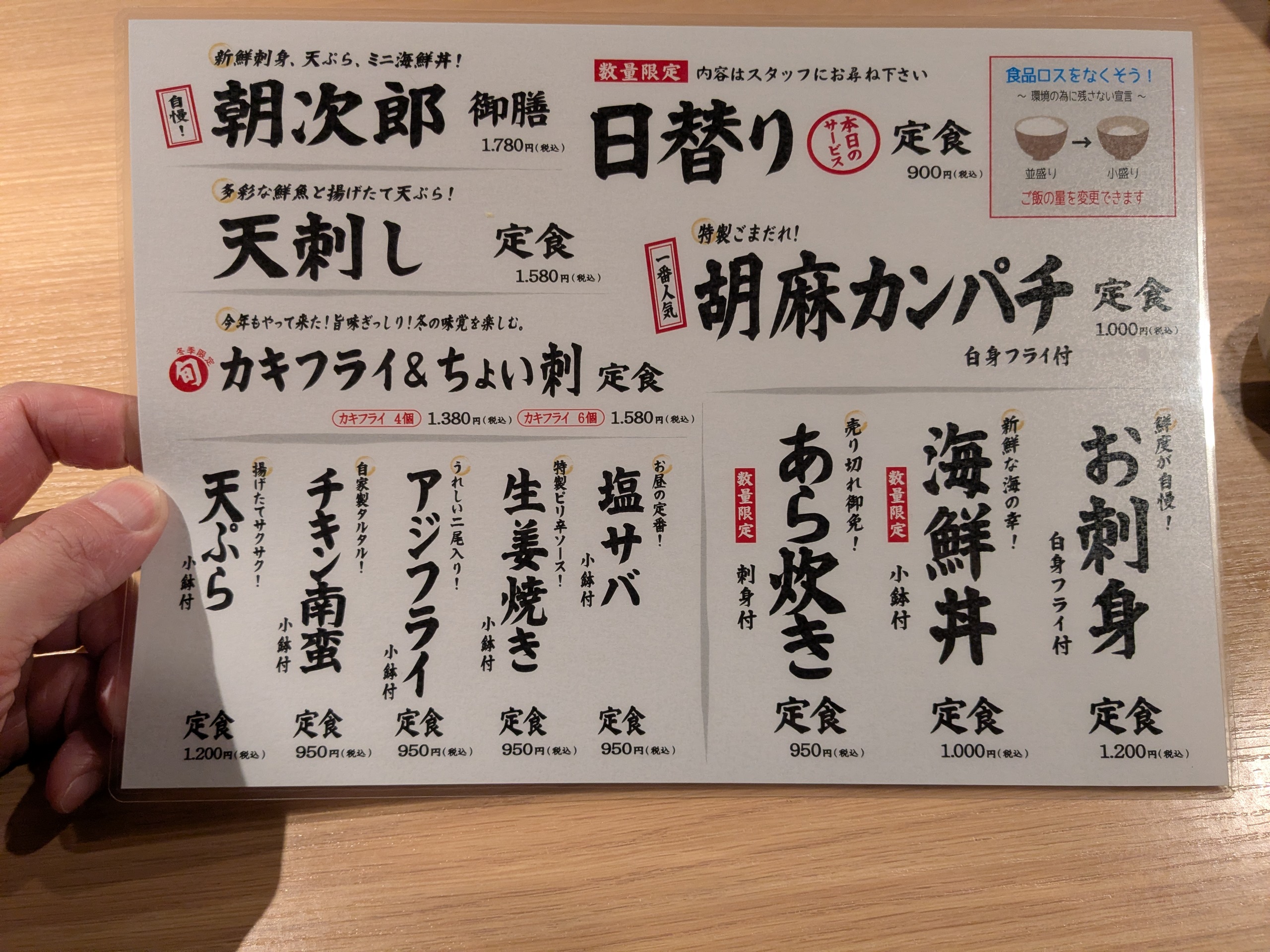 天神ランチで迷ったら、まずは一度、朝次郎の胡麻かんぱち定食を試してみてほしい。“安定感のある満足”を、きっと味わえるはずだ。