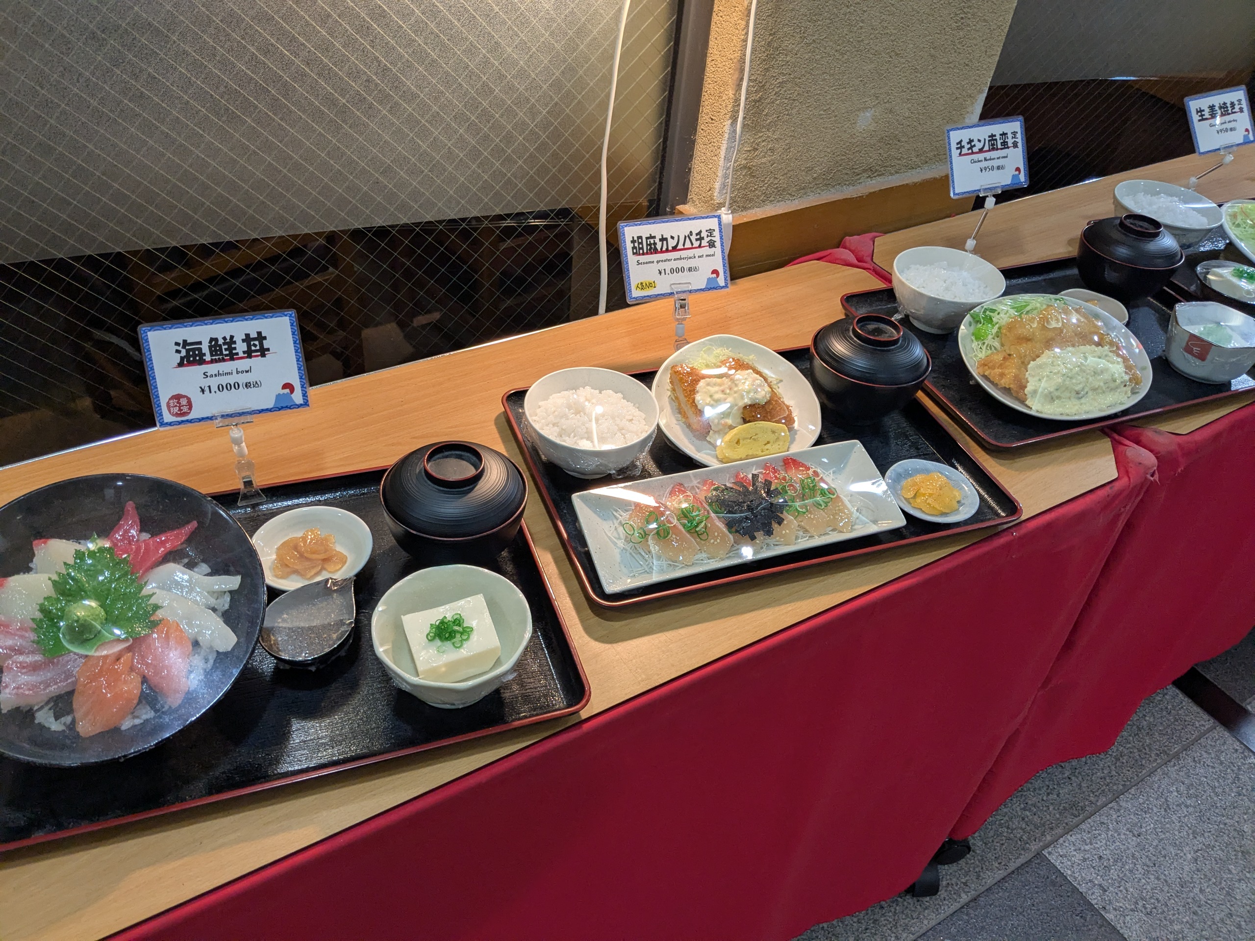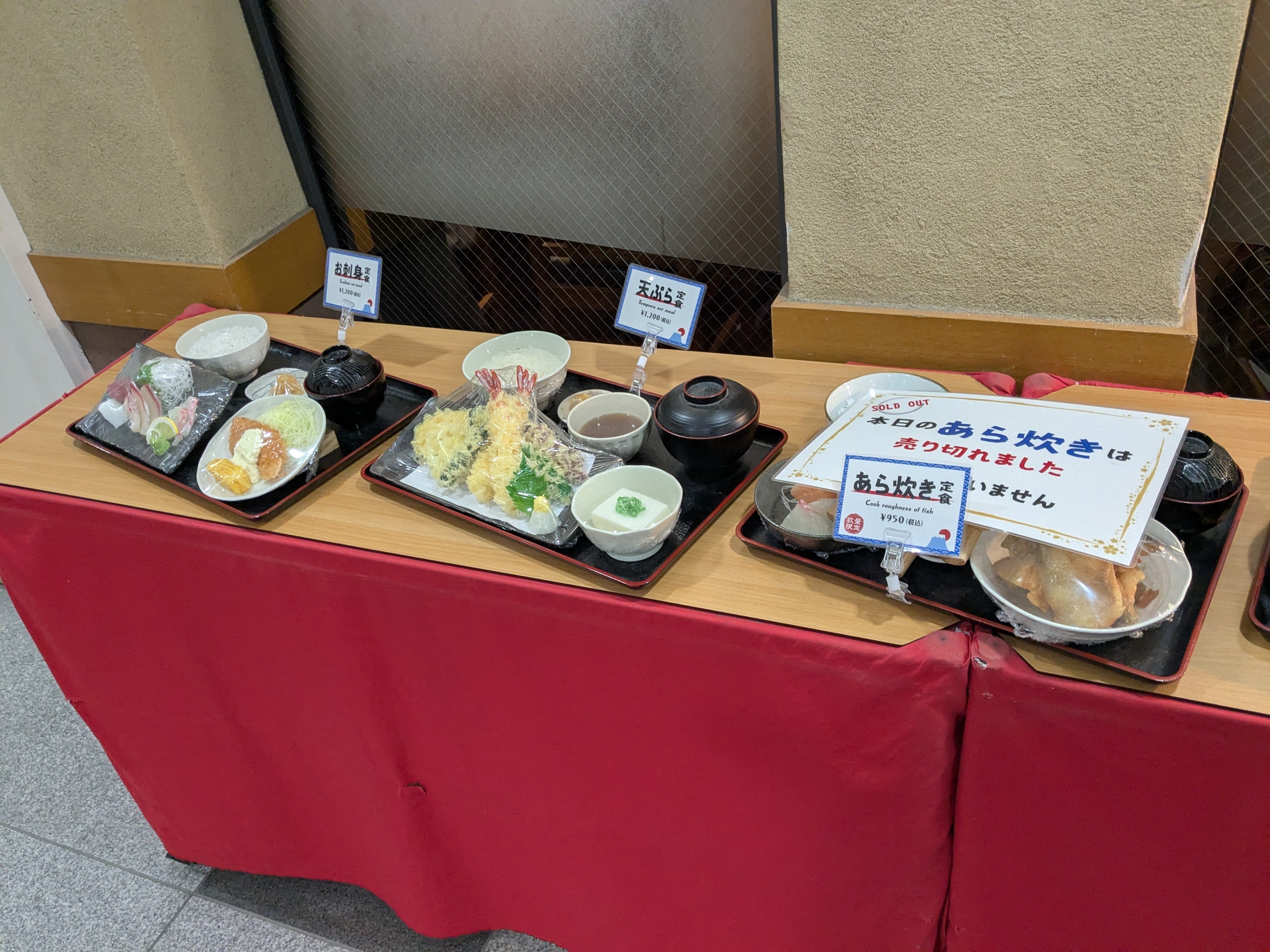 天ぷら定食、海鮮丼、お刺身定食など、1000円前後の定食が豊富に用意されている。