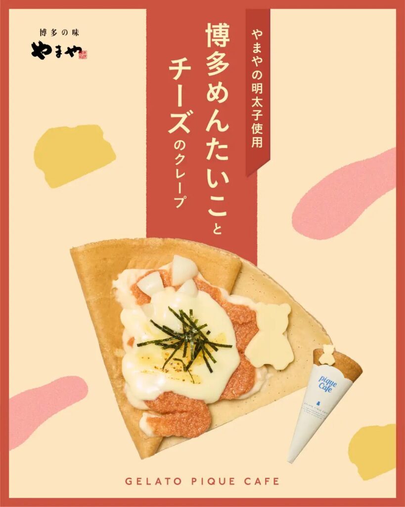 今回の注目は何といってもオープン記念の限定メニュー!博多の味「やまや」とコラボした『博多めんたいことチーズのクレープ』が登場します。